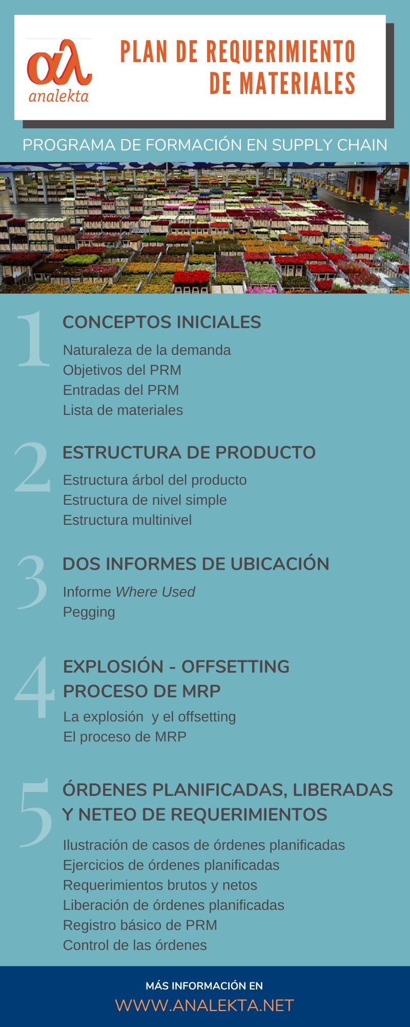 La experiencia de aprendizaje le permitirá al participante tener una visión amplia del MRP que le facilite el cálculo acertado de los tiempos y momentos, para una gestión de órdenes y recepciones que mantenga el equilibrio entre el desabastecimiento y el inventario en exceso.