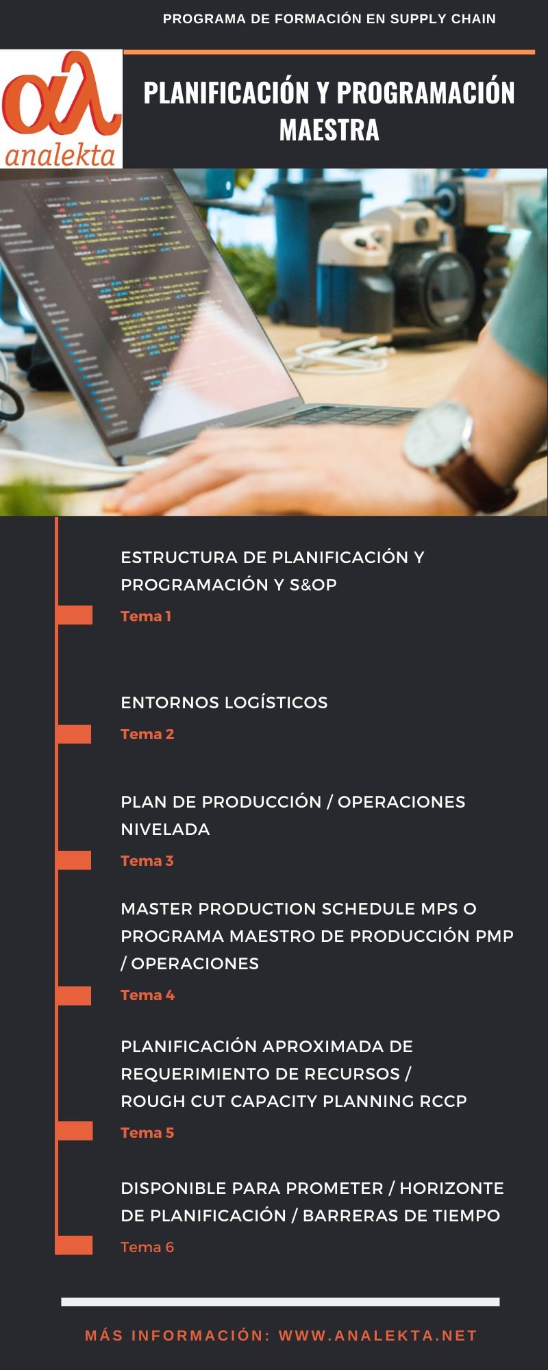 MPS o Programa Maestro, permite desarrollar con detalle las herramientas necesarias para: elegir estrategia de atención nivelada, de seguimiento o híbrida. Determinar los costos de cada una de ellas y poder compararlas. Entender el concepto tan importante de “barreras de tiempo” para la planificación y de “disponible para prometer”. Imprescindible para trabajar con software.